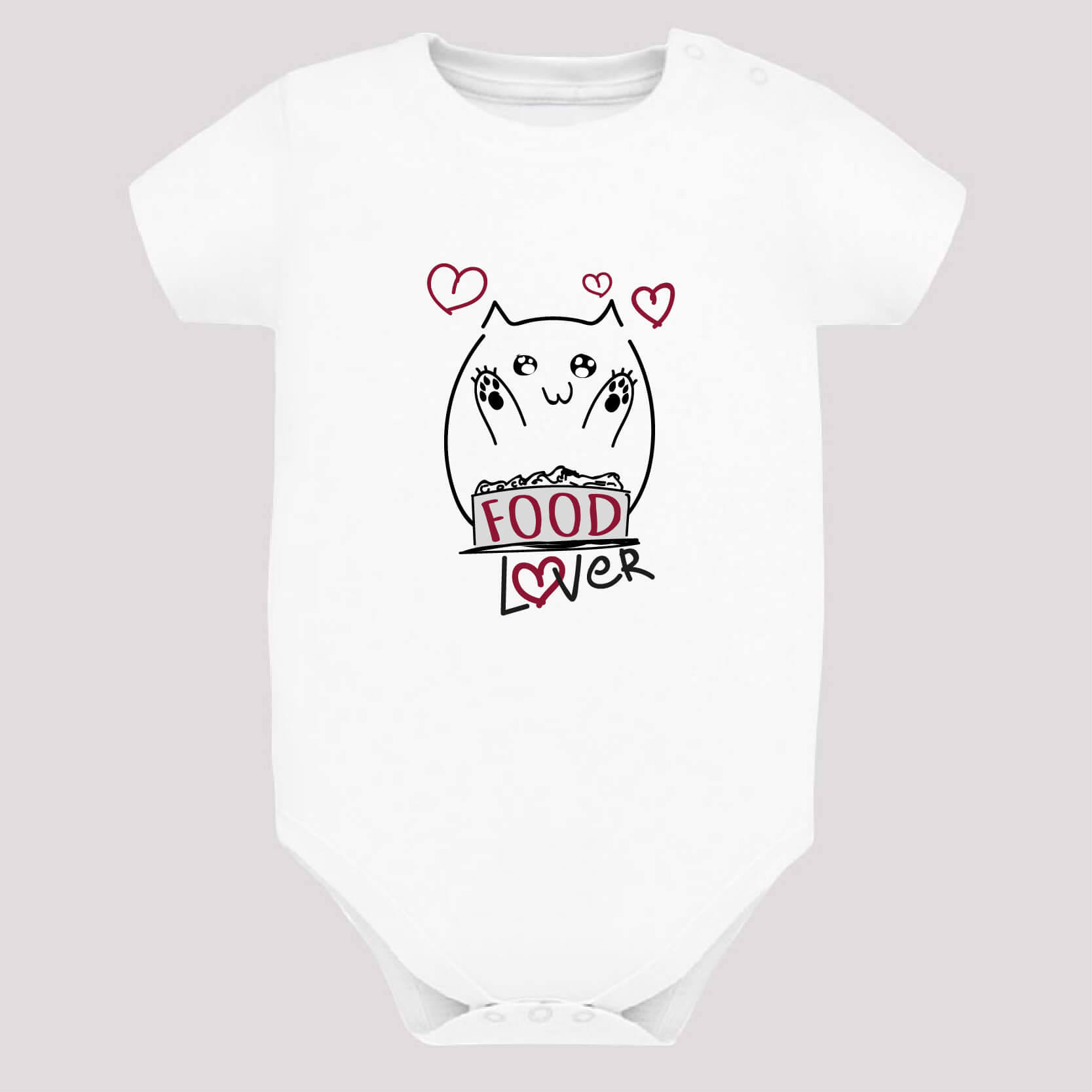 Bodies bébé « Food Lover » avec un chat mignon qui saute sur sa gamelle.
