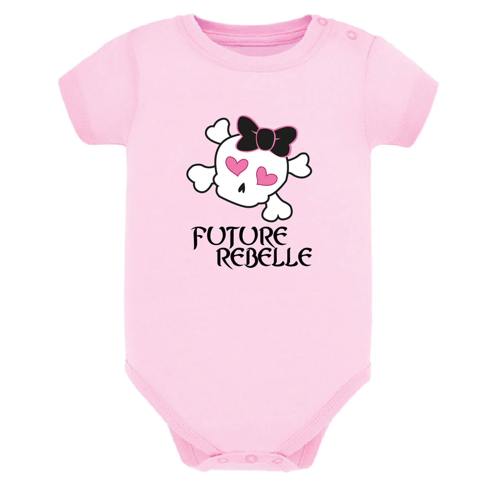 Body Bébé Future rebelle avec une tête de mort trop mignonne et des yeux coeurs.