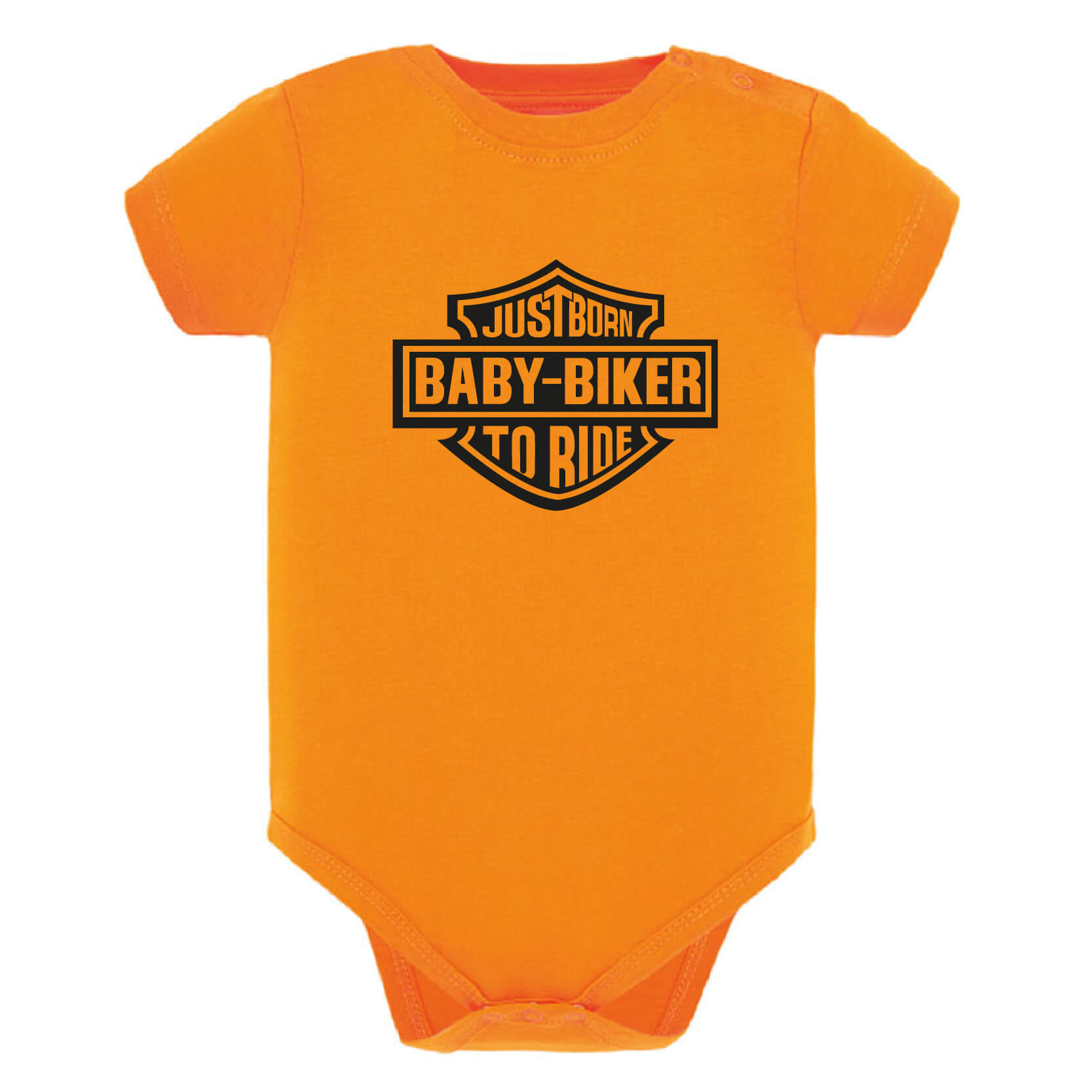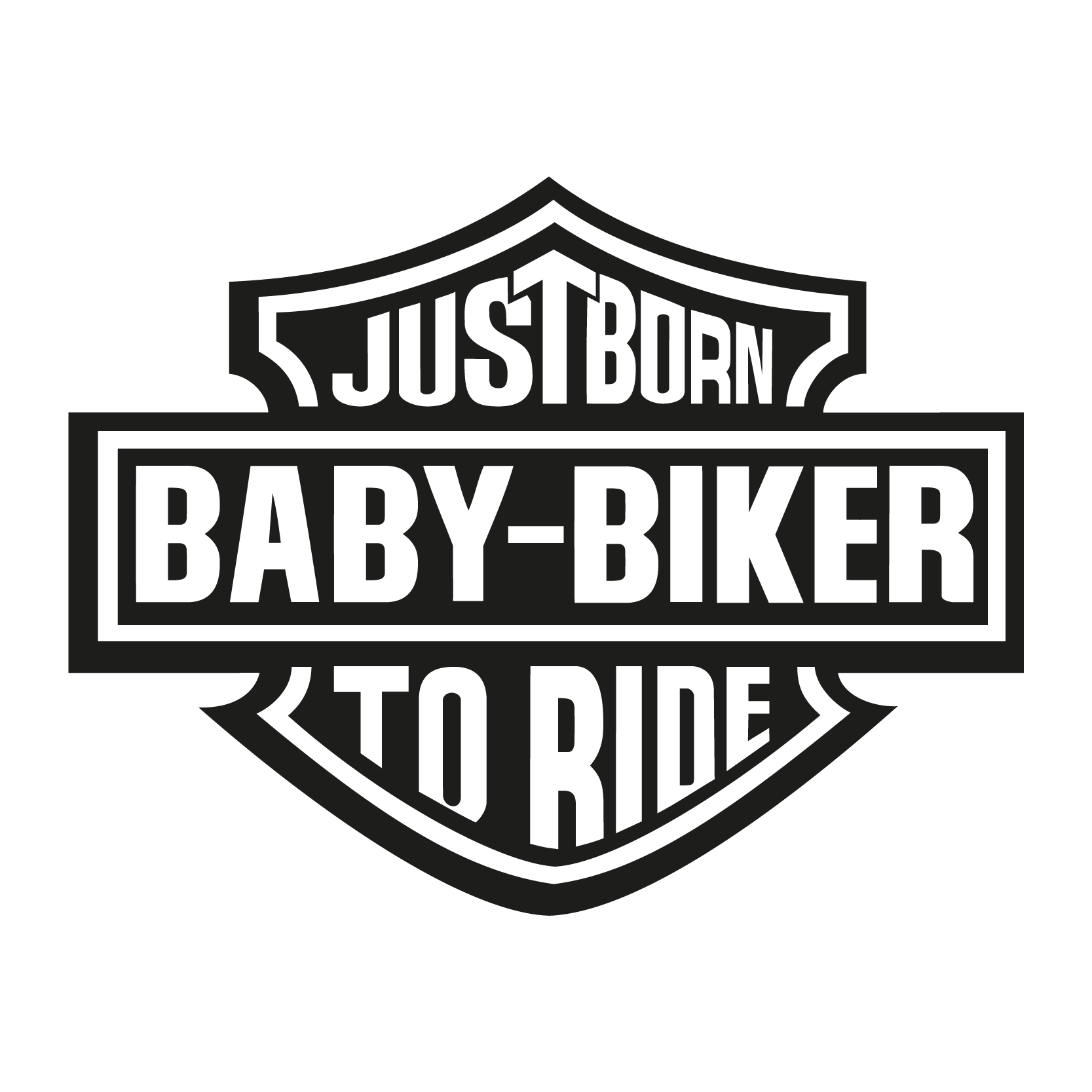 Body bébé style Harley pour les baby biker avec écrit « Just born to ride » à savoir, « né pour faire de la moto » pour tous les bébés futurs motards un peu badass.