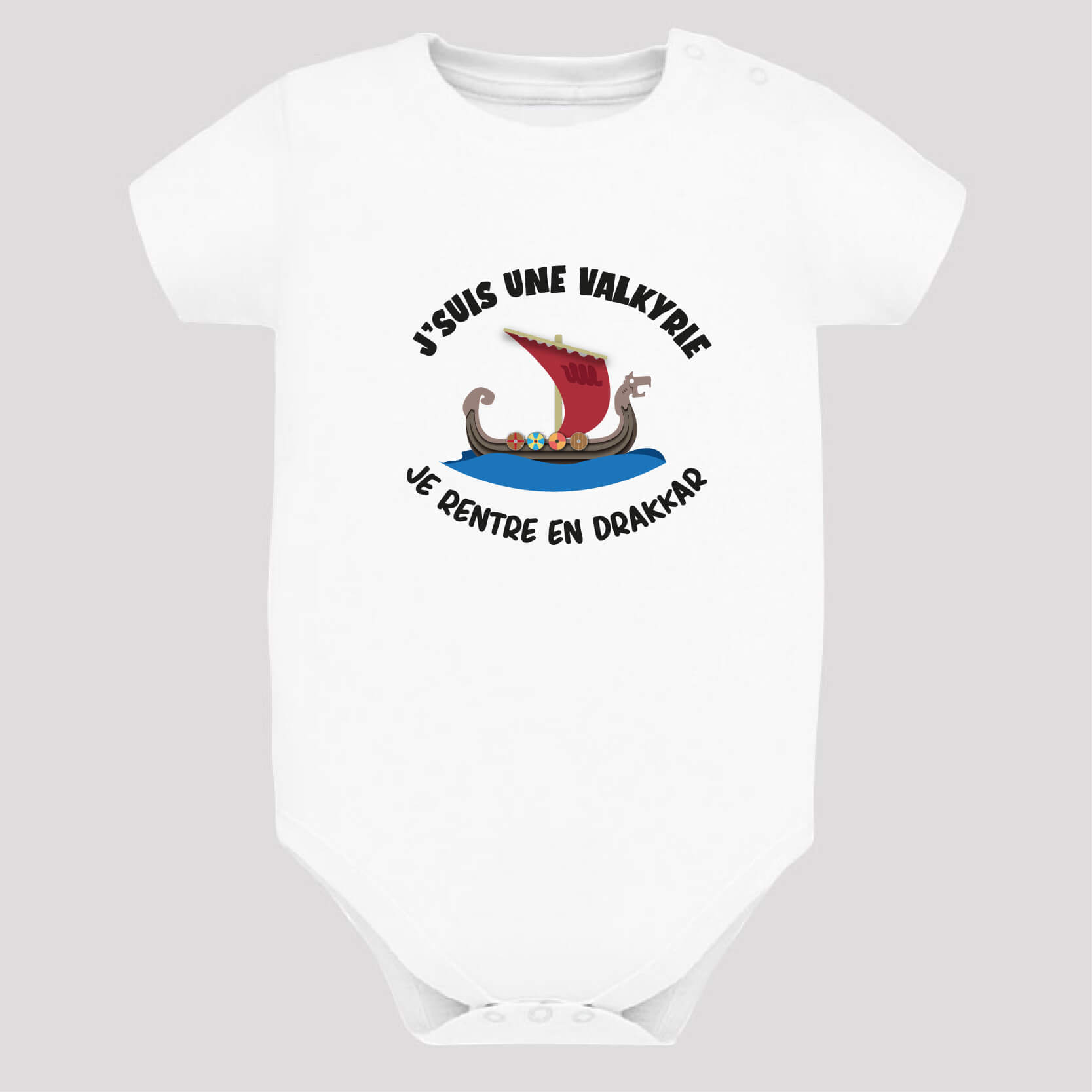 Body bébé « J’suis une valkyrie, je rentre en drakkar ». Pas besoin de poussette quand on a un super navire pour rentrer faire la sieste!