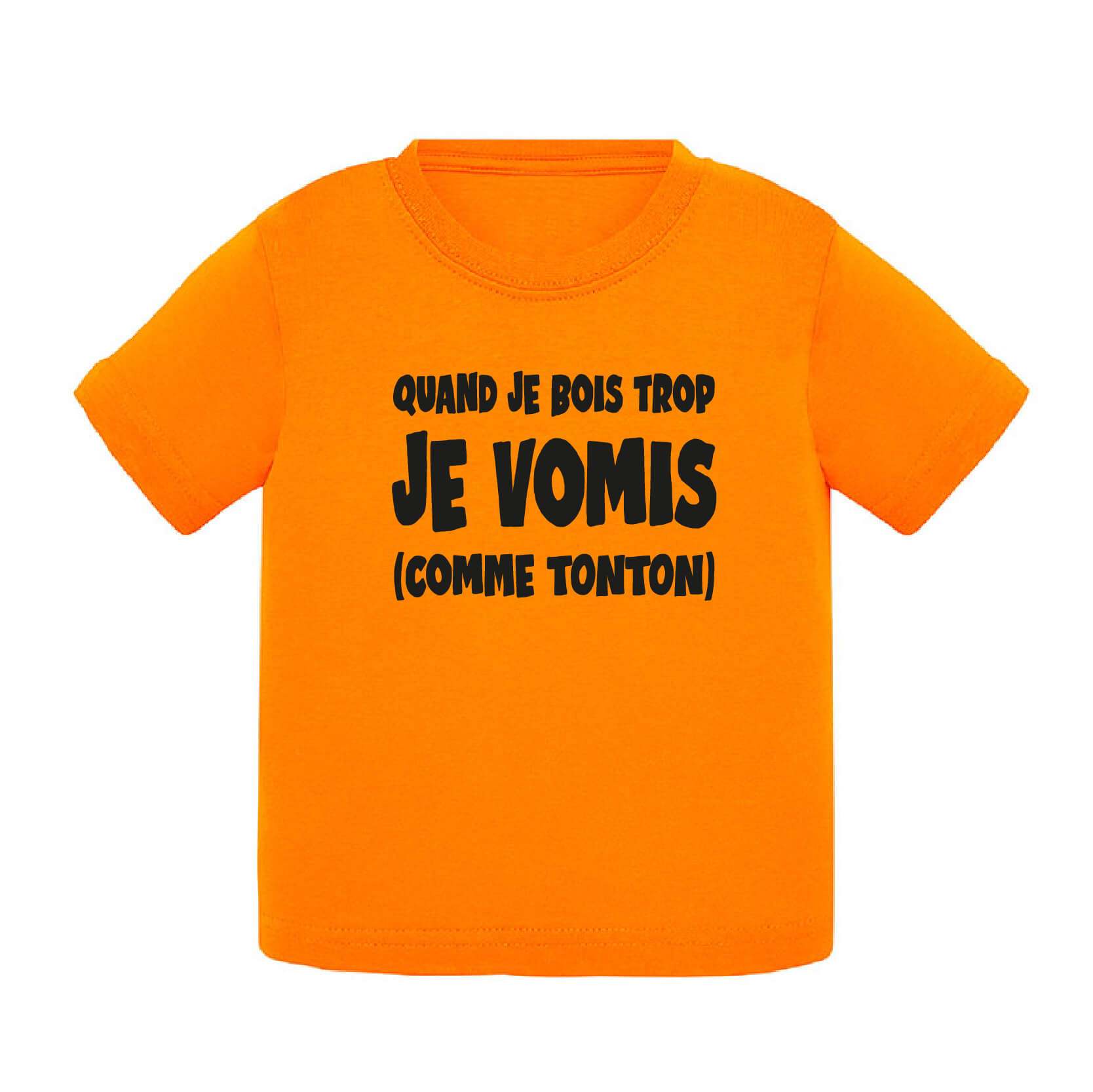 Tshirt bébé marrant avec slogan » Quand je bois trop je vomis (comme tonton) ».